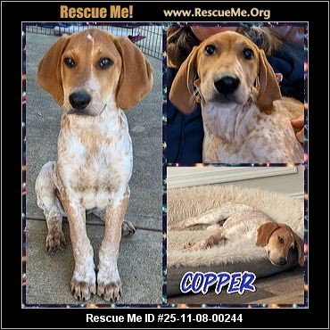 Meet Coppe! Age: est 4 months. Breed: mom is a bluetick hound, dad is unknown. Size: approx 20lbs, we believe he